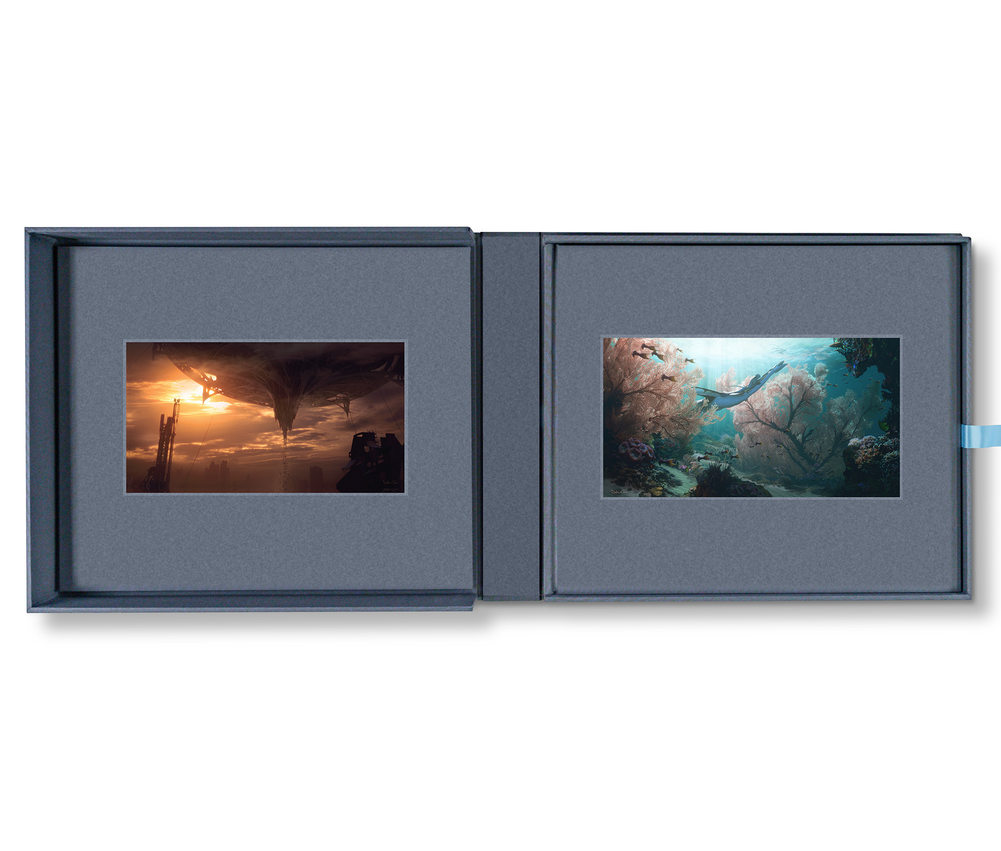 Features an oversized 18 x 15-inch casebound volume in Sakura cloth with foil debossing and a tip-on art print, housed in a bespoke clamshell box.